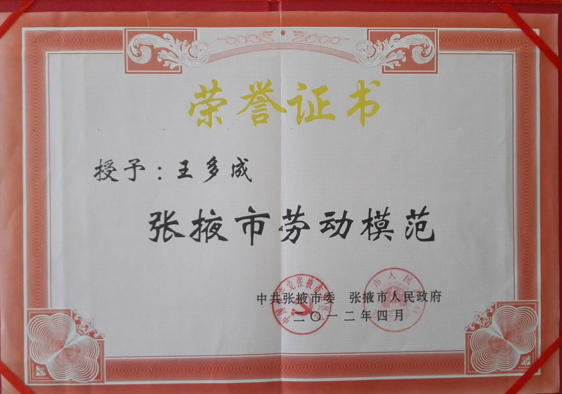 2012年榮獲張掖市科技進(jìn)步一等獎…